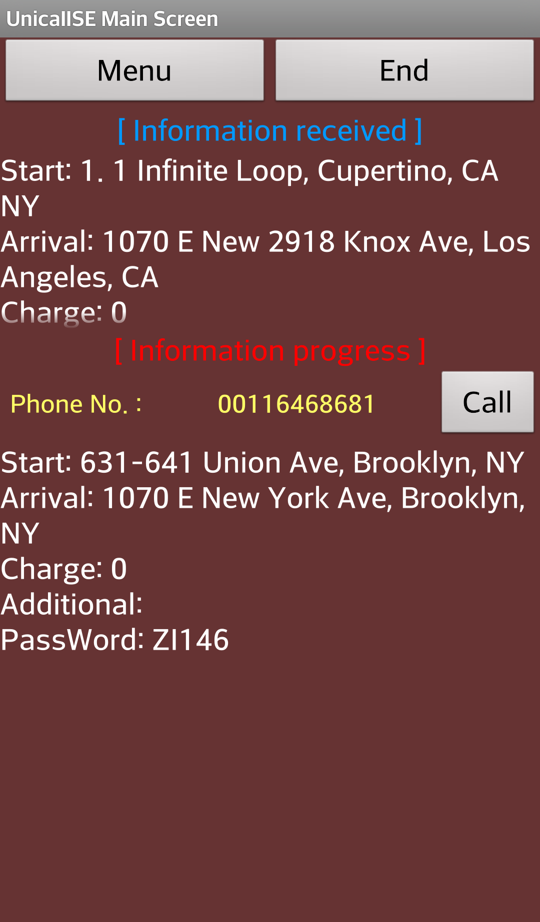 ③ Security Function: Supplies a pass word to both the customer and the driver for each call.