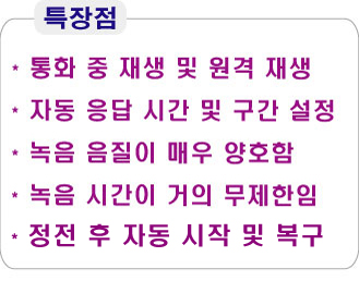 ④ 통화 재생: 저장된 통화 내용을 들을 수 있으며, 통화 중 재생과 원격 재생(청취)도 가능합니다.