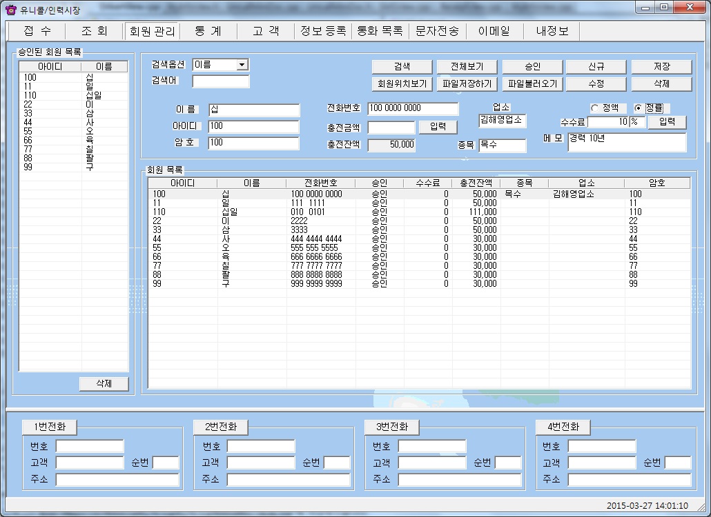 유니콜/인력시장은 기본 인력 관리 프로그램 외에 고객 관계 관리 프로그램의 다양하고 효율적인 기능으로 고객 서비스를 개선할 수 있으며, 쉽고 편리하게 고객, 접수, 매출, 영업 등을 관리할 수 있습니다.