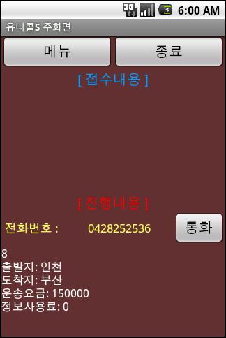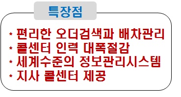 ④ 접수 기능: 화주 및 차주의 전화 주문과 요구를 신속하고 효율적으로 처리하며, 접수에서부터 배차는 물론 사후까지도 관리하고 표시하는 기능들입니다.